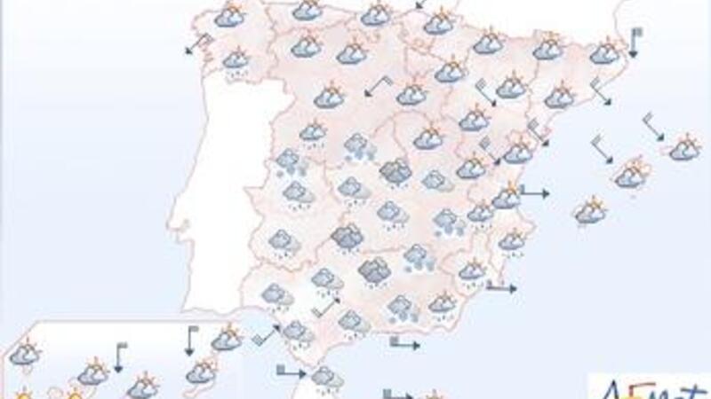 Der er udsigt til sne i den nordlige del af Asndalusien. I Jaén, Cazorla, Guadix og Baza i Granada kan der komme op til 5 cm. Sne.