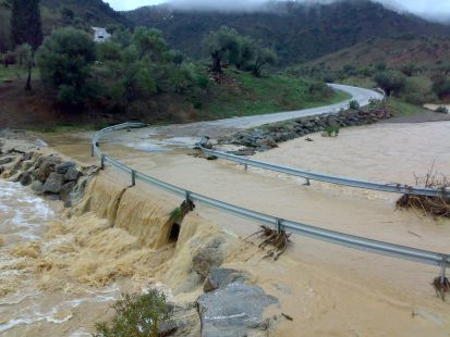 Landevejen mellem Málaga og Churriana var her til formiddag spærret p.g.a oversvømmelser.
