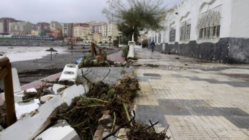 Det hårde vejr har ødelagt hovedparten af strandene øst og vest for Màlaga. Værst er det dog gået ud over Estepona og Manilva, hvor floderne er gået over deres bredder. Her er sandet nogle steder helst forsvundet. Tilbage ligger vandrør og kloakrør.