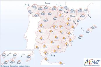 Sydspanien får i dag solrigt vejr og mellem 9 og 16 grader. Let til frisk vind fra nordvest.