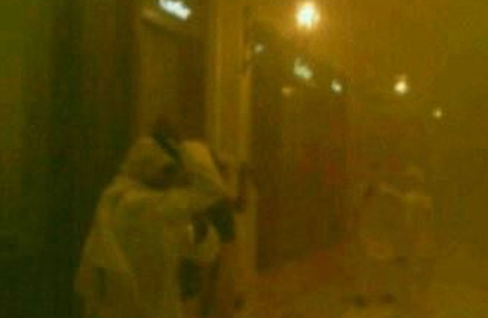 Redningsfolk bærer sårede ud af bygningen
