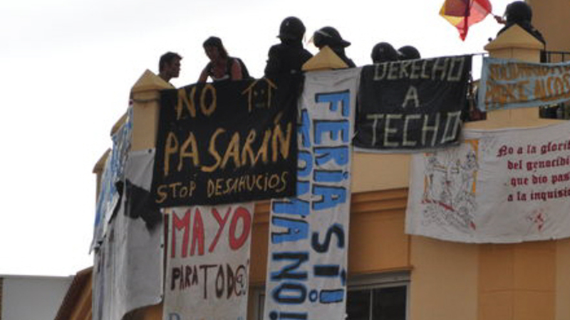 I forbindelse med rømningen demonstrerede en en gruppe fra organisationen Stop Desahucios (Stop Rømninger) foran bygningen, og nogle kravlede også op på bygningens tag for at sprede deres budskab.