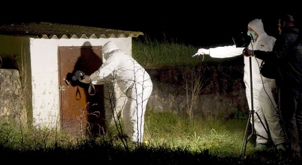 Her er kriminalteknikere i gang med at sikre spor. Det lille skur blev María Esthers sidste hvilested