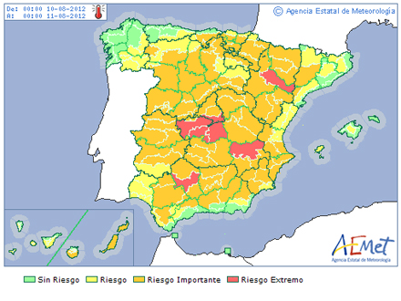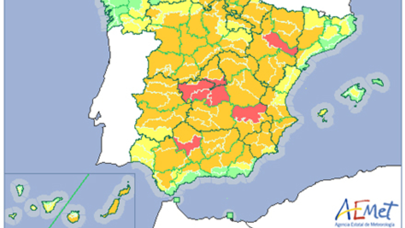 Køligst bliver Nordvestspanien, hvor der ”kun” bliver op til 30 grader. Meget tyder på, at Galicien går fri, mens De Kanariske Øer og Balearerne får op til 35 grader.