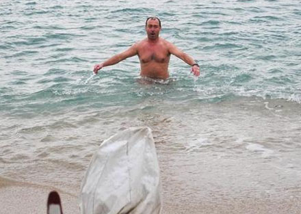 Endnu en meget tapper vinterbader på stranden, Calella de Palafrugell