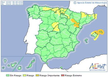 Huesca, Teruel, Burgos, Palencia, Girona, Lleida, Tarragona, Navarra, Mallorca og Menorca hører i dag under kategori 3, mens yderligere 20 provinser er i lettere forhøjet beredskab i kategori 2.