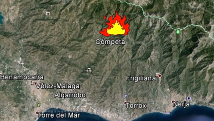 Branden opstod i området Llano de Alberto i den nordlige del af Cómpeta. Både elforsyning og telefoni er delvist ude af drift på grund af branden, som har ødelagt en transformerstation.