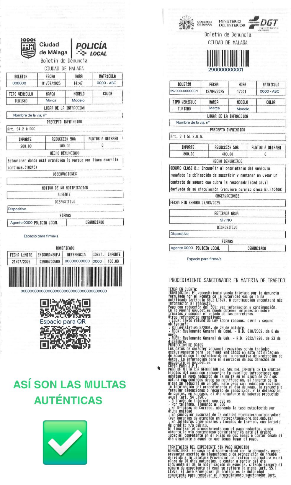 I modsætning til ægte bøder mangler de falske dokumenter grundlæggende oplysninger, såsom betjentens identifikationsnummer, det påståede overtrædelsessted og køretøjets oplysninger.