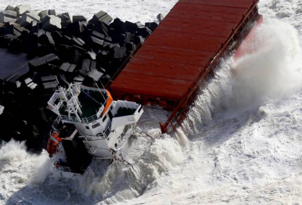 Selv om kaptajnen forsøgte at bugsere fartøjet ind i havnen, blev det ramt af en kraftig bølge, som kastede skibet ind mod høften, hvorefter det brækkede over i to dele.