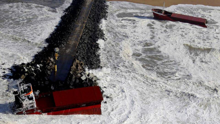 Et 100 meter langt spansk fragtskib knækkede i går over i to dele, da det ved 10-tiden stødte på grund ud for den spansk-franske grænse i Anglet ved Bayonne.
