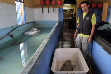 Den lille, nuttede sælunge, der tirsdag blev fanget under stor ståhej ved Guadalmedia-flodudmundingen i Málaga, er blevet det helt stor trækplaster i Centret for udryddelsestruede arter. Her skal sælen nu komme til kræfter oven på sin rejse fra Grønland.