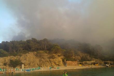 Flere end 1.500 personer måtte søndag eftermiddag evakueres efter en omfattende skovbrand ved den populære badestrand La Cala de Banirrás på Ibiza. Hovedparten af de evakuerede var turister, som deltog i en fest på stranden, mens resten var beboere i de 40 omkringliggende ejendomme, oplyser regeringen på Balearerne.