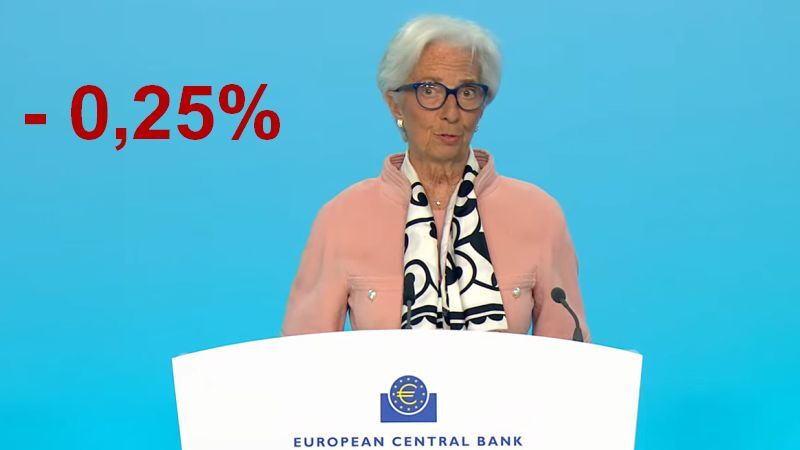 Styrelsesrådet besluttede i dag at sænke de tre vigtigste ECB-renter med 0,25 procentpoint. Beslutningen om at sænke renten på indlånsfaciliteten - den rente, hvorigennem vi styrer pengepolitikken - er især baseret på vores opdaterede vurdering af inflation udsigterne, dynamikken i den underliggende inflation og styrken af den pengepolitiske transmission.
