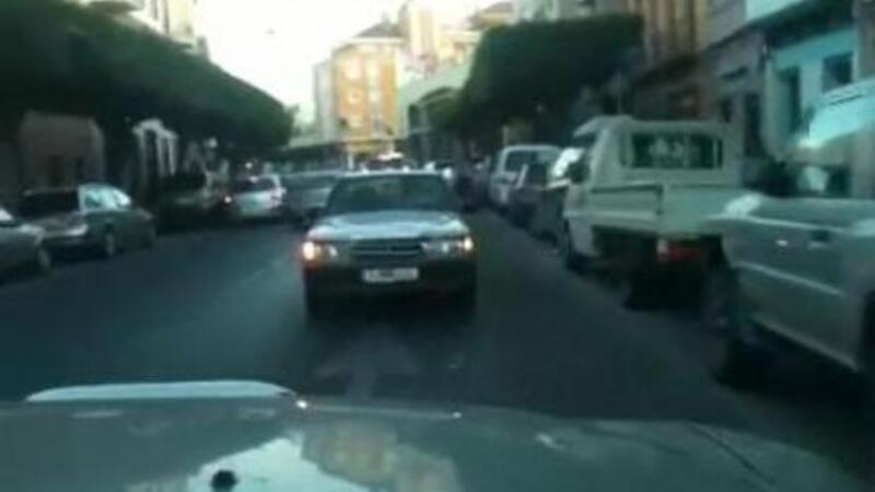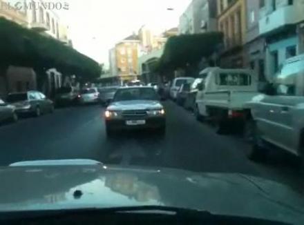 Ifølge loven må man højst køre 15 meter i bakgear, men hvad gør man så, når bilen pludselig går i stå, og det eneste, der fungerer, er bak-gearet? Den spanske turist var ikke i tvivl, da hans bil gik i stå i en af de hektiske gader i den spanske koloniby Melilla på den Nordafrikanske kyst... Man tager da bare turen baglæns.
