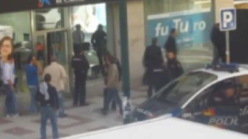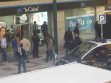 Episoden, der mest af alt minder om optagelserne til en ny Woody Allen-film, fandt sted mandag eftermiddag i og uden for La Caixas afdeling i Calle Martínez Maldonado nr. 41.