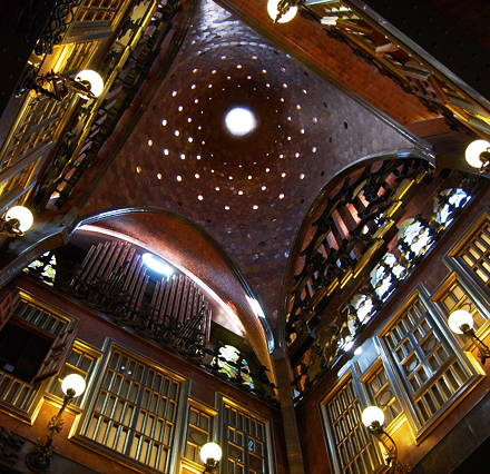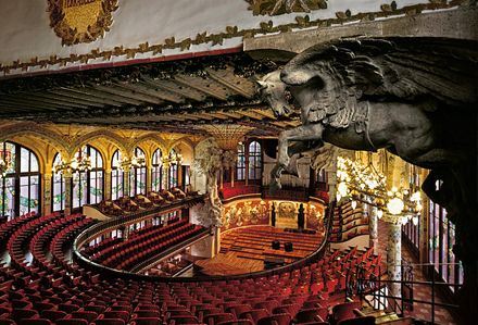 Musikhuset Palau de la Música blev indviet af Lluís Domènech i Montaner i 1908 og er et eksempel på rendyrket modernistisk eksplosion, da arkitekten her valgte at inddrage alle kunstarter; skulpturer, mosaikker, farvet glas og smedejern.