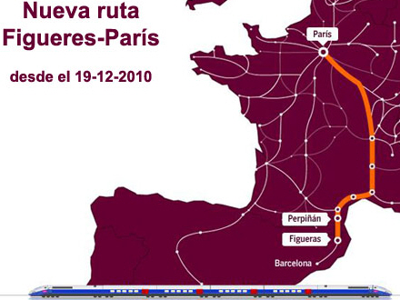 Der er to daglige afgange mellem Spanien og Frankrig, og prisen for en normal enkeltbillet mellem Barcelona og Paris er 63 euro.