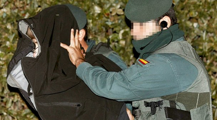 En guardia civil tilbageholder et medlem af UKIN under aktionen
