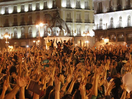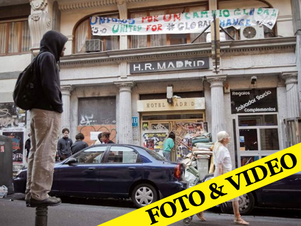 Besættelsen af Hotel Madrid fandt sted under lørdagens omfattende demonstrationer over hele landet, hvor tusindvis af mennesker gik på gaden for at protestere mod økonomisk krise og finansielle spekulationer.