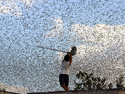 Der er blevet snakket cikader overalt i byen, og mange har prøvet at bekæmpe den voksende sværm med egne midler – men uden held. Indbyggerne er enige om, at de aldrig har oplevet noget lignende. Nogle steder var de hvide mure helt dækket af de larmende insekter.
