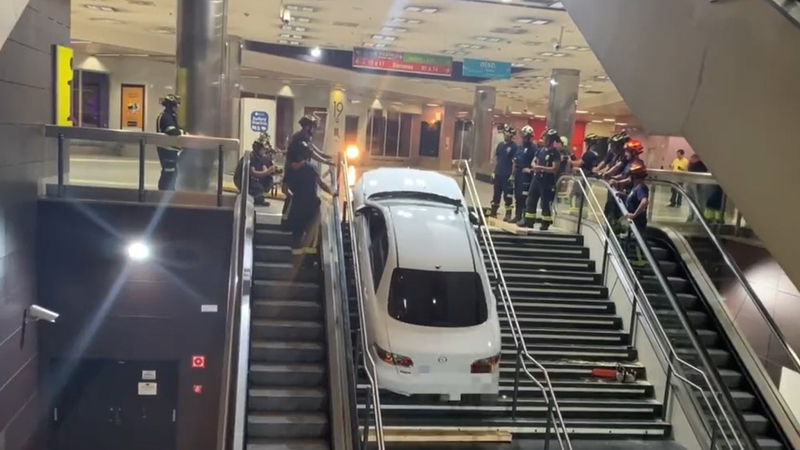 Un conductor ha irrumpido en el interior del intercambiador de Plaza Elíptica con un coche robado y ha quedado encajado en las escaleras sin causar heridos.