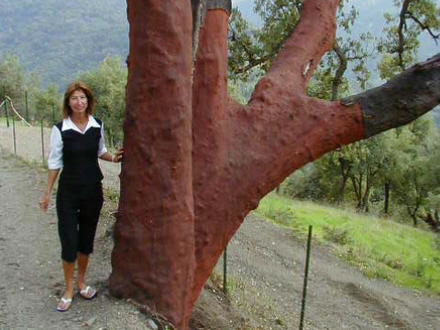Undervejs kommer du forbi de mange korkege. Disse store flotte træer ser unægtelig temmelig sølle ud med barken skrællet af, men noget får dog altid lov til at sidde tilbage, så træet overlever.
