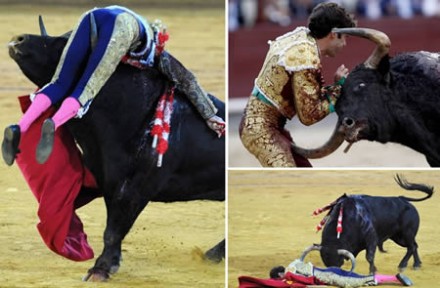 Tomás blev stanget af den femte tyr under eftermiddagens tyrefægtning, og måtte under omgående behandling. Tyrens horn borede sig ind i tyrefægterens venstre ben og der var en overgang fare for hans liv.