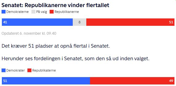 I en afstemning blandt vores læsere fokuserede vi i går på hvem, der ville få flertallet dels i Senatet og dels i Repræsentanters Hus. Fordi det er vigtigt - uanset valget af præsidenten - om præsidenten for fri bane til at gennemføre beslutningerne eller, om vejen vil være fyldt med bump.