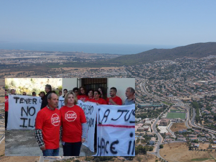 Det var familie og venner til ejendommens ejere og medlemmer fra foreningen Plataforma Stop Derribos der var gået sammen om at protestere mod kravene om nedrivning af ulovligt byggeri.