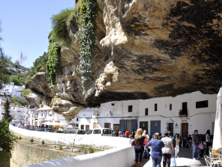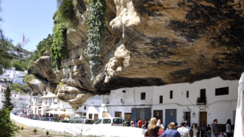 Setenil de las Bodegas er en landsby med omkring 3.000 indbyggere, placeret lige over Río Trejo, og den nederste del af landsbyen er blevet bygget direkte under kløftens klippefremspring, som er skabt af floden. Man udnytter det naturlige hulrum og udhæng, som er blevet dannet i klippevæggen i tidens løb.