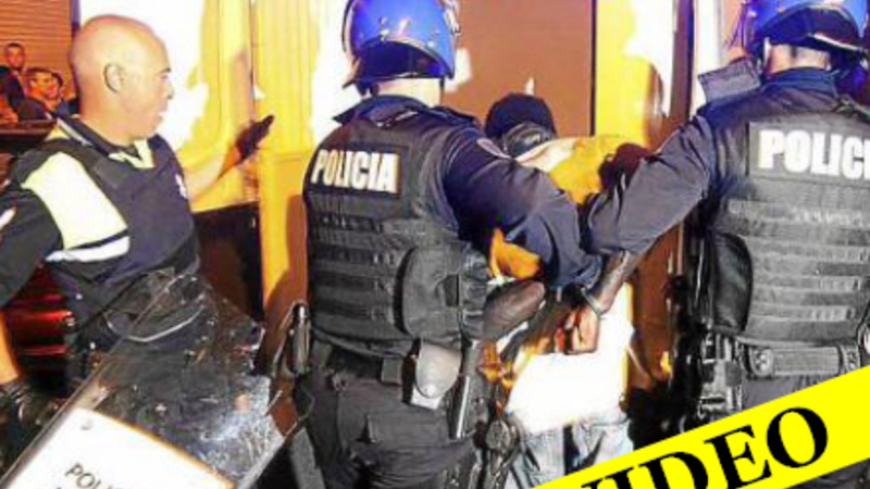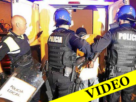 Et par betjente fra Policía Local, som var på vej til politistationen i San Fernando, hørte lyden af glas, der blev knust, og nærmede sig det sted, hvor manden slog løs på ruderne til en bankfilial. Da manden fik øje på betjentene, stak han af og søgte tilflugt i sin gamle lejlighed i Calle Arc de Sant Martí 54.