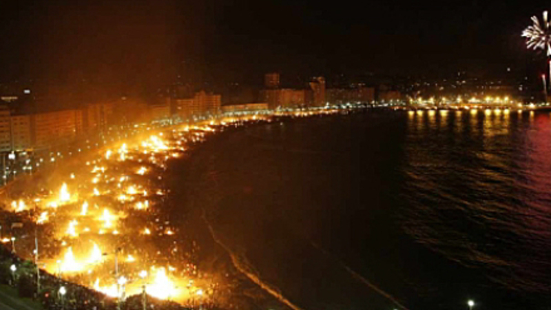 Sankt Hans-aften er en af de største festligheder i A Coruña og samler hvert år titusinder af personer på strandene i Riazor og Orzán. Traditionen med at springe over bål stammer fra kelterne, der på årets længste og lyseste dag tændte store bål for at beskytte kvæg og skræmme onde ånder væk. Ritualet blev sidenhen udvidet med at danse og at springe over bålet.