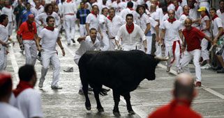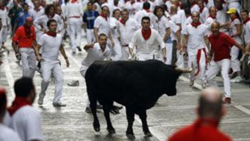 En kraftig byge tidligt om morgenen havde gjort byens gader våde og glatte. En stor, sort tyr styrtede tre gange og var på et tidspunkt så forvirret, at den var ved at springe gennem indhegningen på ruten, der fører til byens tyrefægter-arena. Tyren stoppede op og så ud til at være mere interesseret i at at finde ud af, hvad der skete uden for hegnet, end indenfor.