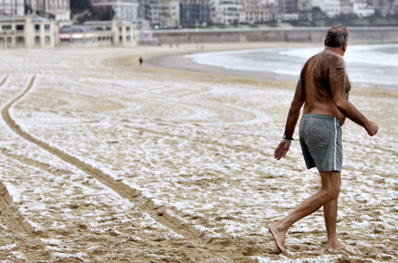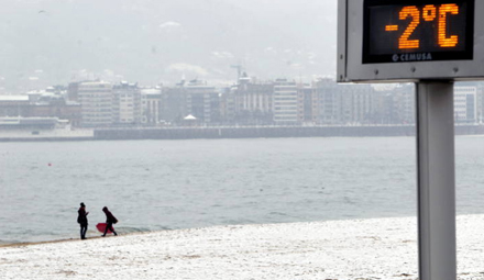 I Barcelona fik turisterne sig en noget uventet overraskelse, da der torsdag morgen lå sne på stranden. 230 skoler er i dag lukket på grund af sne og i Cantabrien er fire bjergpas lukket.