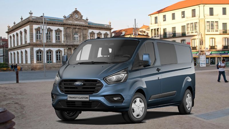 Den valgte bil i Spanien er en Ford Transit Custom Trend, 2.0L Ecoblue Hybrid (MHEV) til en pris på 28.930 euro (cirka 215.530 DKK)