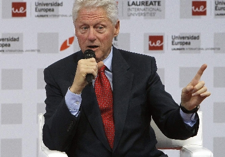 Clinton deltog sammen med Spaniens kronprins Felipe i et forum om unge og beskæftigelse arrangeret af universitets-netværket Laureate, som han er ærespræsident for.