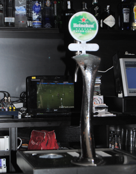 Den første forhindring for de danske fans opstod, da teknikken svigtede, og 30 minutter af kampen kunne ikke ses via barens tv-signal. Det endte så med, at seks danskere og noget vedhæng samledes i en gruppe foran baren for at se kampen på en bærbar pc. Det lykkedes dog at få forbindelsen på højkant igen, så resten af kampen kunne ses på tv-skærmen.