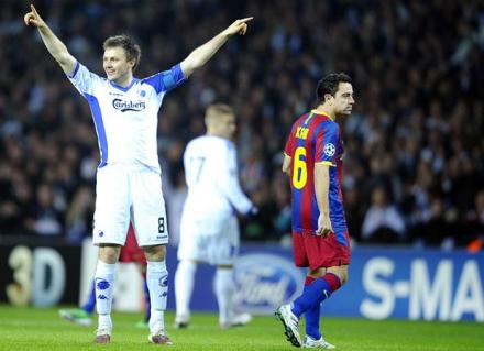Men de danske mestre kunne måske have fået endnu mere ud af kampen, hvis målmand Victor Valdés var blevet straffet for at have slagtet Dame N'Doye allerede i det 11. minut.