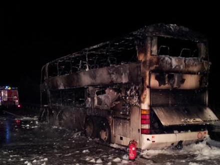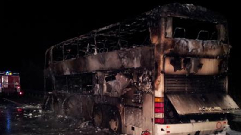 Han fortæller desuden, at alle selv kunne forlade bussen, men at 22 var lettere kvæstede af røgforgiftning, og brandfolk bragte dem til hospitaler i nærheden.