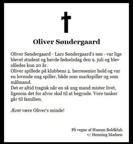 Mindeskrift til ære for Oliver fra fodboldklubbens hjemmeside.