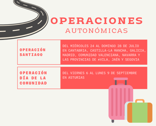 Af denne grund og for at imødekomme det større antal mennesker, der starter deres ferie i weekenden, og som vælger bilen som transportmiddel, har DGT oprettet særlige trafikregulerings- og kontrolanordninger for alle weekender i sommerperioden og intensiveret dem i de første weekender i hver måned på grund af de såkaldte ud- og hjemrejseoperationer.