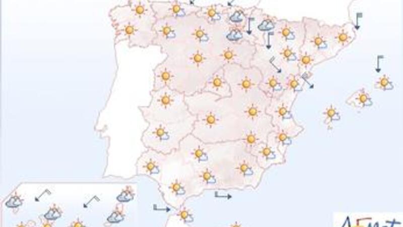 Vi får mest solrigt vejr og dagtemperaturer på omkring 27 grader, let vind fra syd øst og om natten ned til 18.