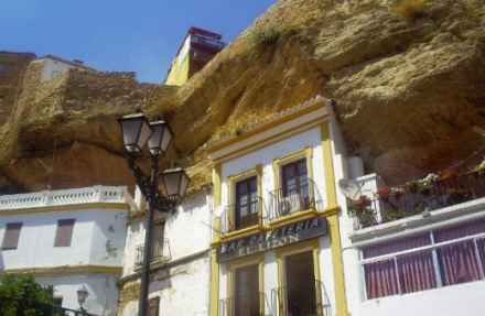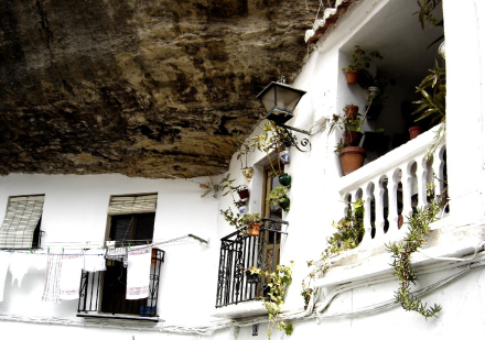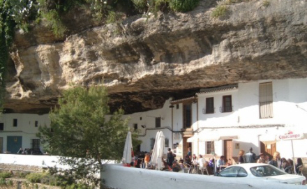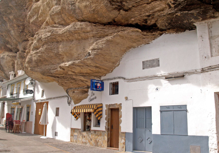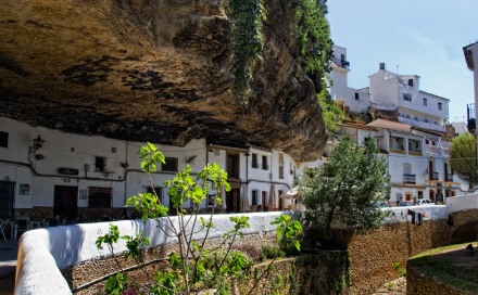 Setenil de las Bodegas er en landsby med omkring 3.000 indbyggere, placeret lige over Río Trejo, og den nederste del af landsbyen er blevet bygget direkte under kløftens klippefremspring, som er skabt af floden. Man udnytter det naturlige hulrum og udhæng, som er blevet dannet i klippevæggen i tidens løb.