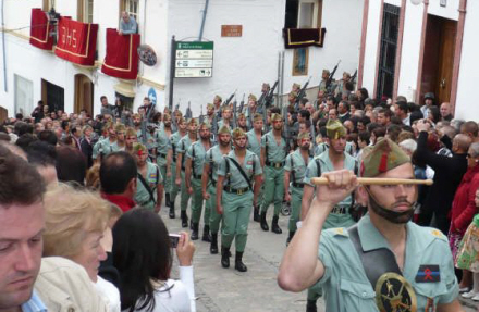 Her kan man hvert år opleve de to rivaliserende broderskaber, Santa Vera Cruz og Nuestro Padre Jesús, kæmpe om at lave det optog i hvad, der er blevet kendt som den ”guerra de los Bandos”.