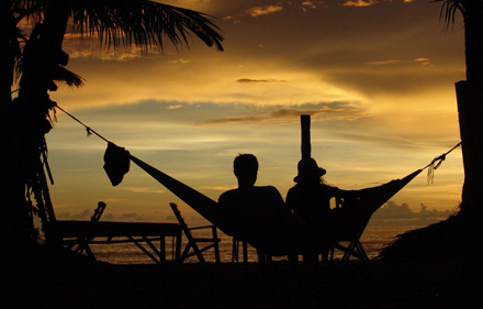 Jeg ville starte med strategisk at placere hængekøjen således, at den roligt kunne gynge mig skiftevis fra sol til skygge, mens jeg læste i min bog. Jeg ville tage pauser fra hængekøjen ved at smutte ned til vandet sammen med mine to yndlinge for at se, om vi kunne fange små fisk, krabber eller andet. Vi ville studere vores fangst, og siden slippe den fri - måske tage et par småfisk med hjem.