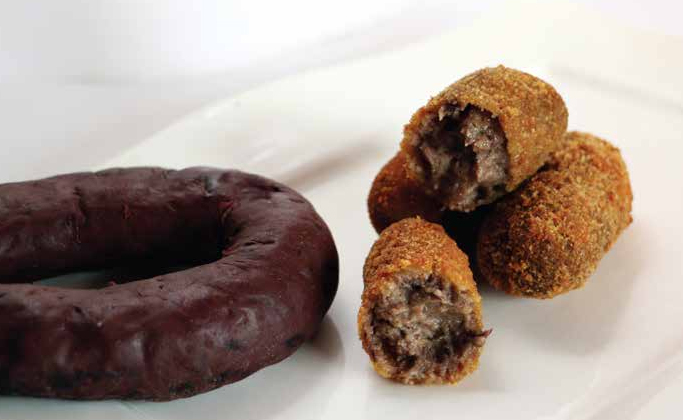 Kroketter af blodbudding. I dette tilfælde skal vi stege blodpølsen på panden, før vi laver bechamelen, så den ikke er rå. Hvis du vil have dem meget fine og glatte, skal du hakke blodpølsen med en blender og tilsætte lidt kondenseret mælk for at gøre dem mere cremede.