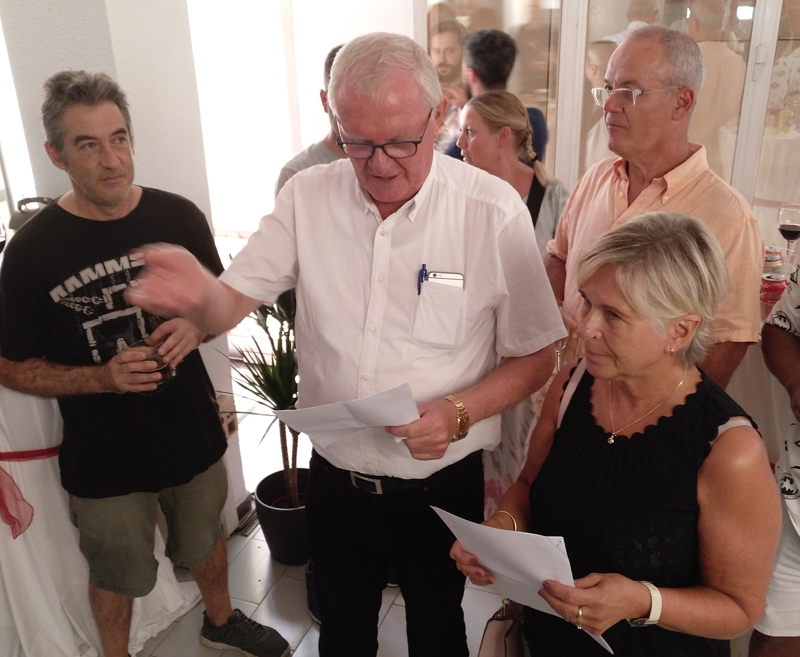Holger Helle - ledsaget af Birgitte Palka - holder tale for Hans Hugo og Søren