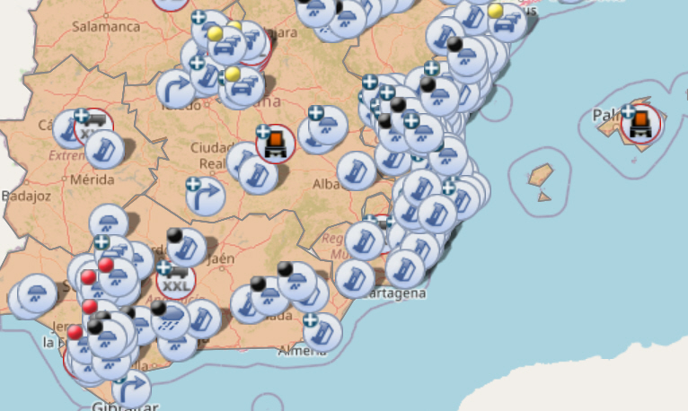 Dagen startede dog med rød alarm i Huelva, og det med god grund, da man fik 117 mm regn på bare tre timer. Nu og i variende tidsrum resten af dagen er der orange og gule advarsler i Andalusien, Catalonien, Extremadura, Valencia og på Balearerne.