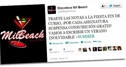 Festen skulle finde sted på The Mil Beach, i beboelseskvarteret Mil Palmeras i Pilar de la Horadada i Alicante og blev annonceret på Twitter. For hvert fag, eleverne dumpede, var der en gratis drink.