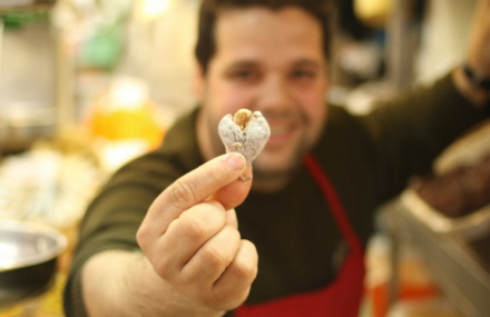 Hallen var oprindeligt skibsværft, da havet engang nåede helt derop, men den er i dag forvandlet til en vidunderlig markedshal med et kæmpe udvalg af frugt, grøntsager, fisk og kød.